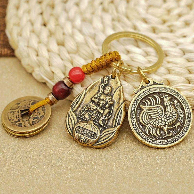 真鍮十二支キーホルダー、金運アップ、富を呼び込む、出入り安全、バッグペンダント、車のキーホルダー