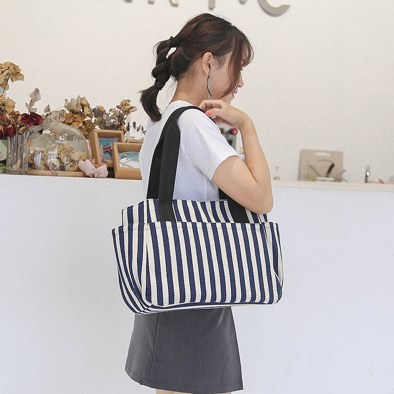 防水シンプルな女性のハンドバッグ韓国版バッグストライプ布バッグファッション弁当箱バッグ弁当バッグバッグ広州