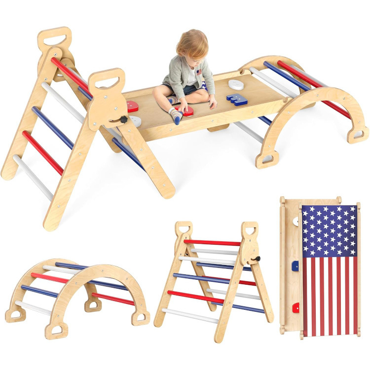 カスタマイズされたカラフルな木製クライミングフレームスリーインワンファイブインワンベビートレーニングクライミングはしごの色と素材はカスタマイズ可能