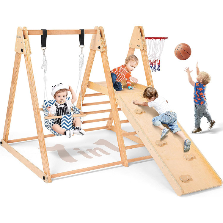 木製のロッククライミング棚子供用室内折りたたみ式幼児室内遊び場滑り台ブランコセット体力トレーニング