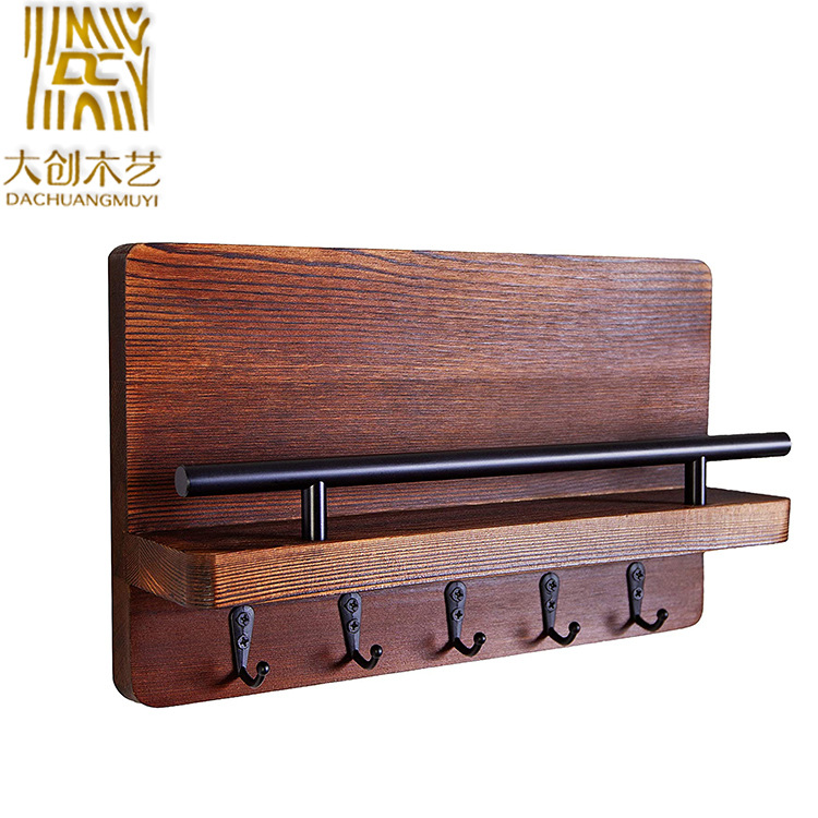 メーカー直販木製レトロ壁掛け多機能フック付き収納棚対外貿易実木コートフック販売促進