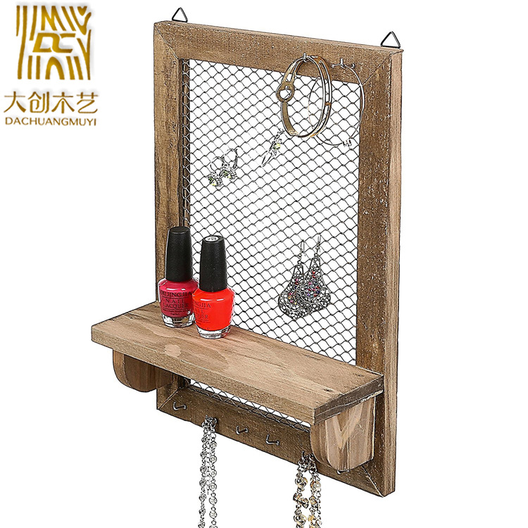 メーカーカスタム田舎金属壁掛けジュエリー展示棚木製フック付き多機能収納棚