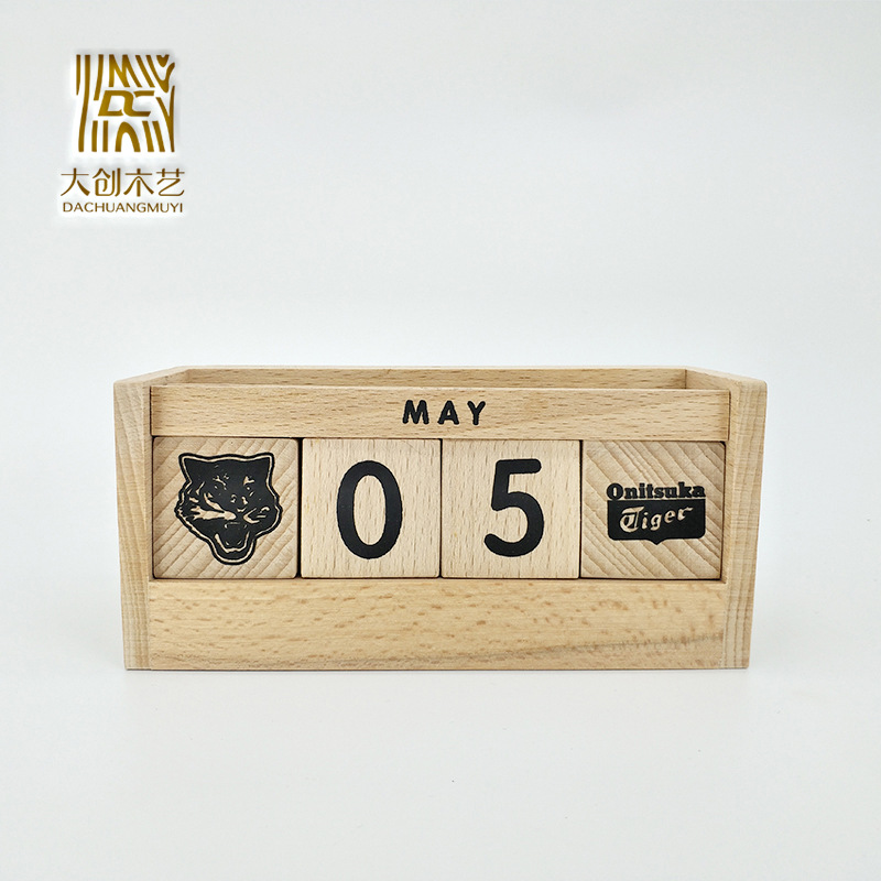 シンプルな原木の置物のデスクトップ用品のカレンダーは実用的です。