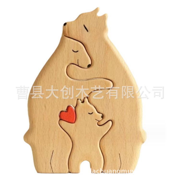 木製の熊の母子のセットのデスクトップの置物の工芸品の積み木のジグソーパズルの木製の置物