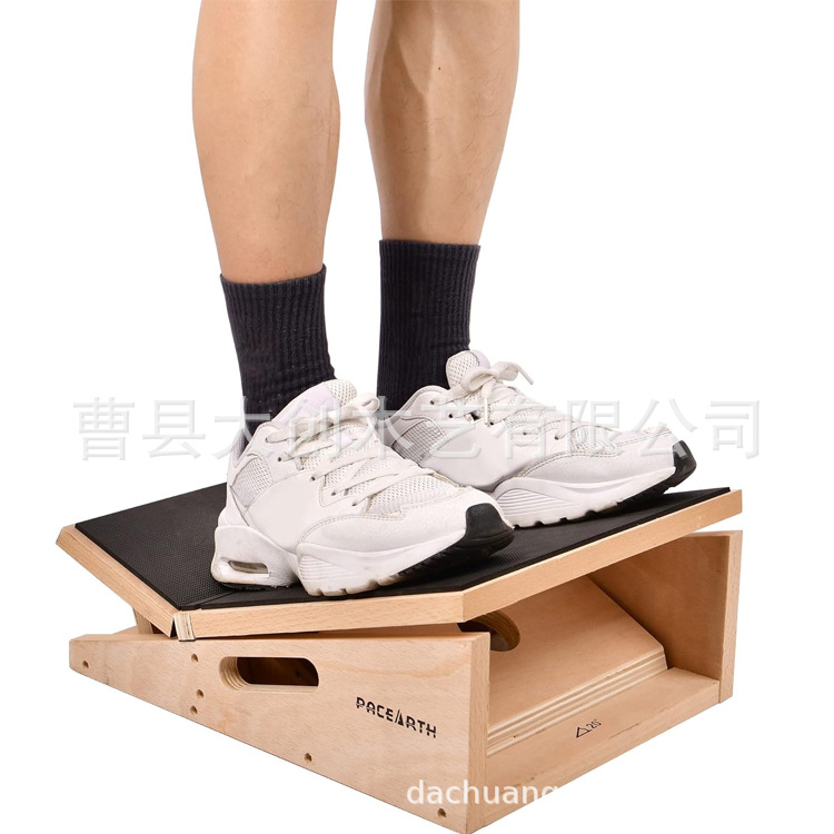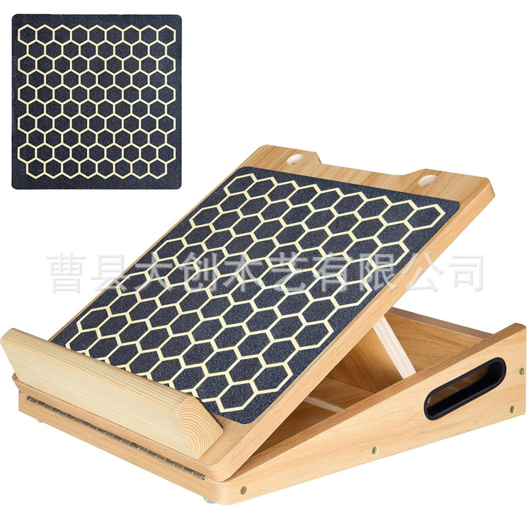 専門の木製斜板は、下腿の伸びに使用され、傾斜を調節でき、外側のハンドルに滑り止め面がついている