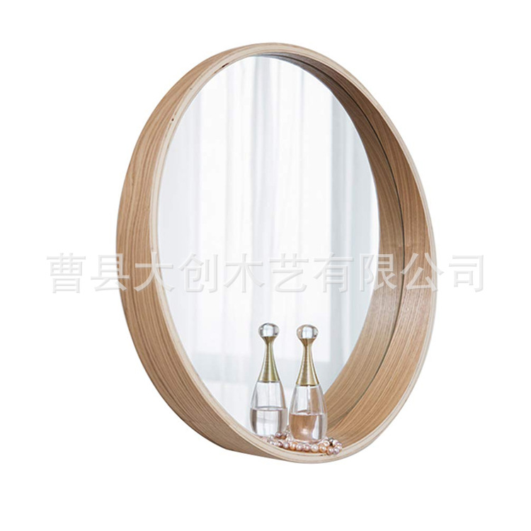 カスタマイズされた木製バスルーム寝室無垢材フレームラウンドドレッシングウォールミラー収納ウォールミラーサイズ素材ロゴ
