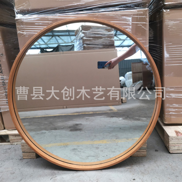 カスタマイズされた木製のシンプルなデザインの木製ラウンドミラーオーク フレーム付きラウンドウォールミラーのサイズ、素材、スタイルはすべて生産可能です