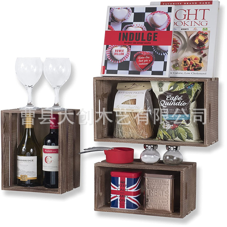 カスタマイズされた木製収納ラック壁掛け赤ワイン収納ラック 3 点セットさまざまな木製収納および整理ラックを製造