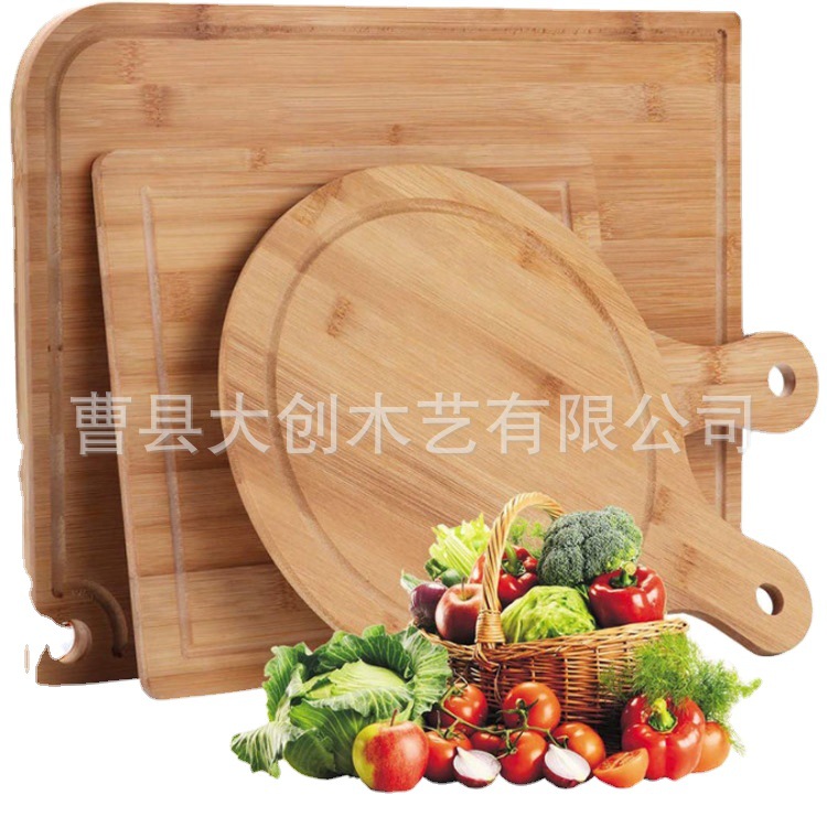 メーカーは、ジューススロットとハンドルを備えた竹まな板の3点セットを卸売することができます。素材とサイズはカスタマイズ可能です。