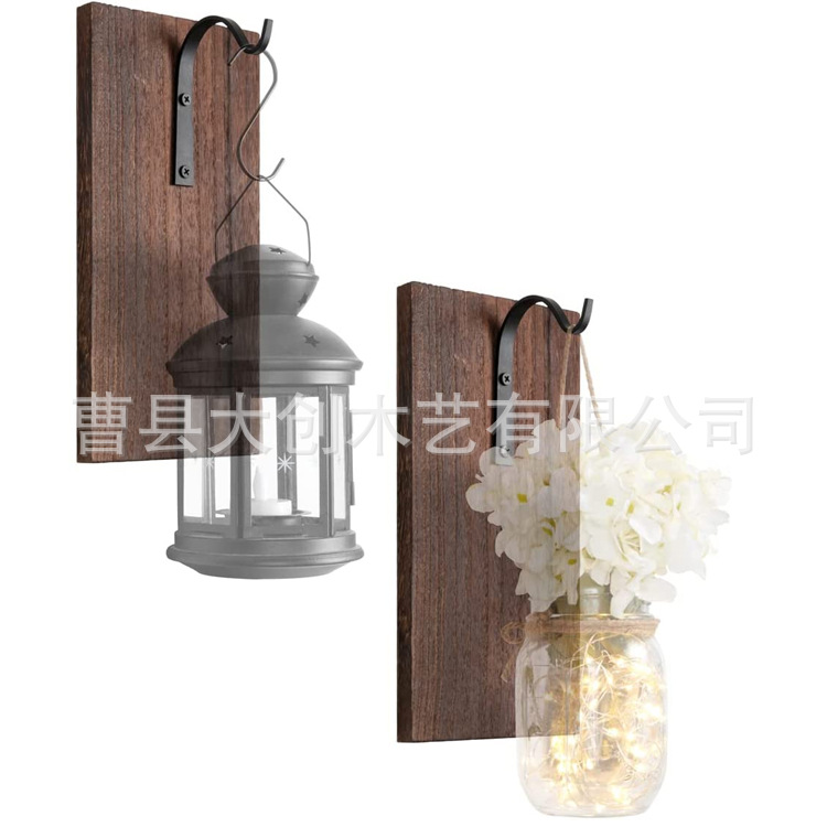 カスタム木製壁ボード、フック付き、メイソンジャーランタン壁掛け壁装飾用