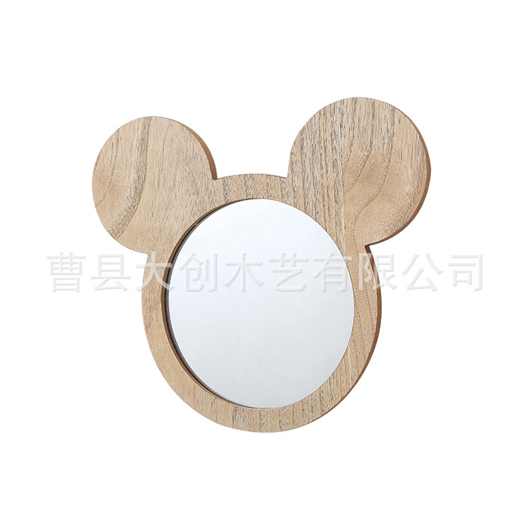 カスタム木製漫画動物壁ミラー寝室浴室木製装飾ミラー壁フック付き
