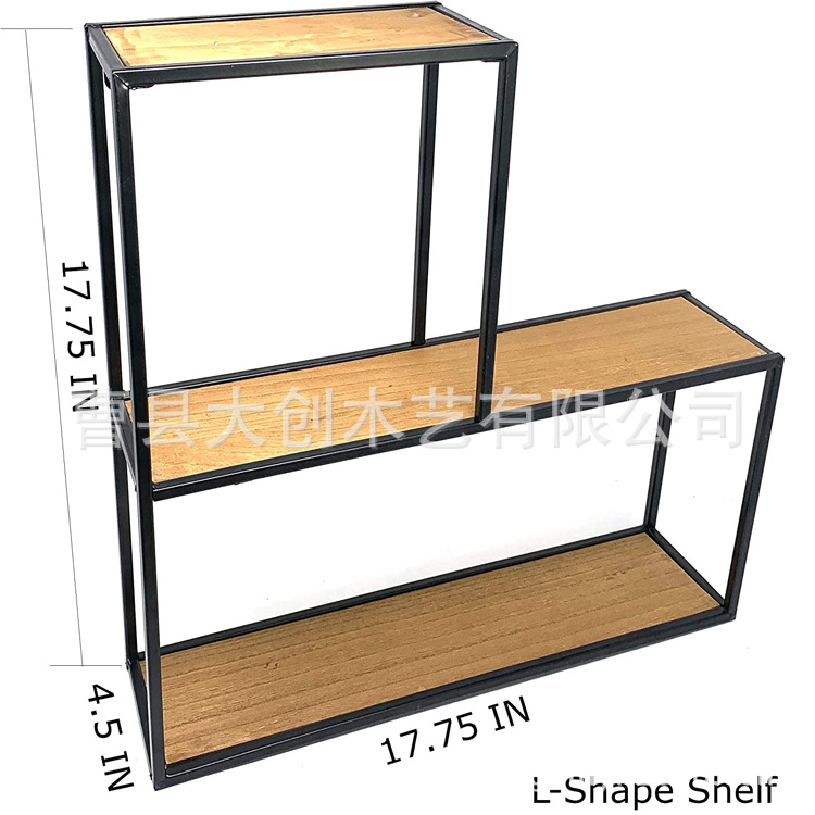 木製壁掛けクリエイティブブラックメタルフレームウッドベニヤフローティングシェルフカスタマイズ可能な密度ボード桐材パイン材