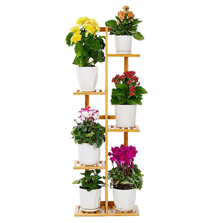カスタム竹製植物棚鉢植え室内外マルチスタンド展示棚、省スペース、組み立てが簡単