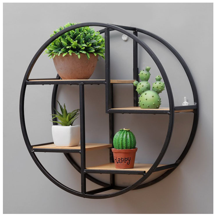 中国式客間壁の物置棚鉄芸木製仕切り板円形壁掛け家庭装飾棚収納棚