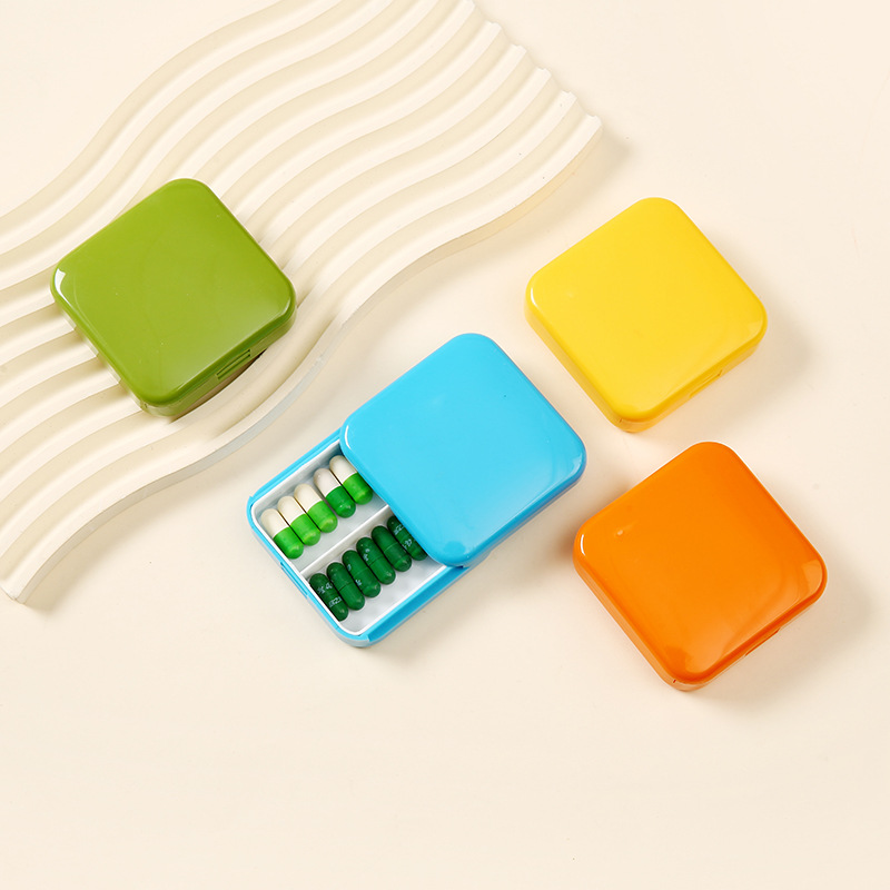押し引きの2つの四角形の薬の箱の携帯密封は薬の箱の家庭用の小型の薬品の収納箱の現物の卸売りを分けます。