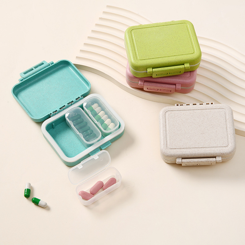 対外貿易二重密封小麦薬箱携帯薬収納箱三格独立薬箱卸売り印字