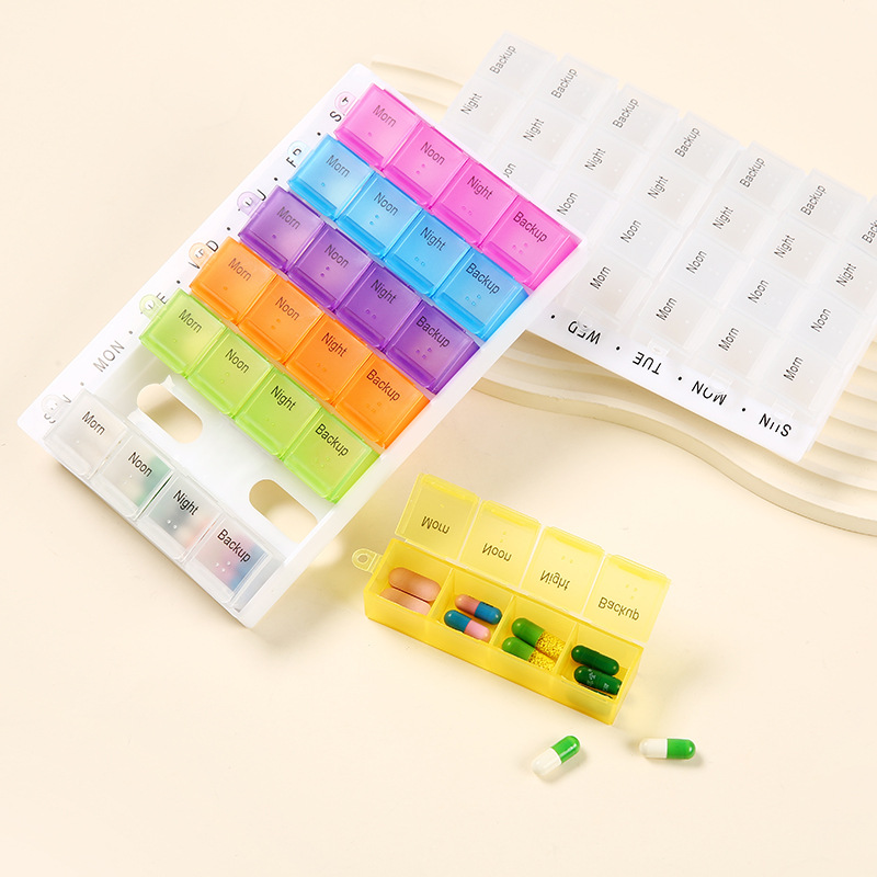 カラーカバー28格の薬箱は、一週間の老人の携帯薬箱に点字の小さな薬箱を収納することができる