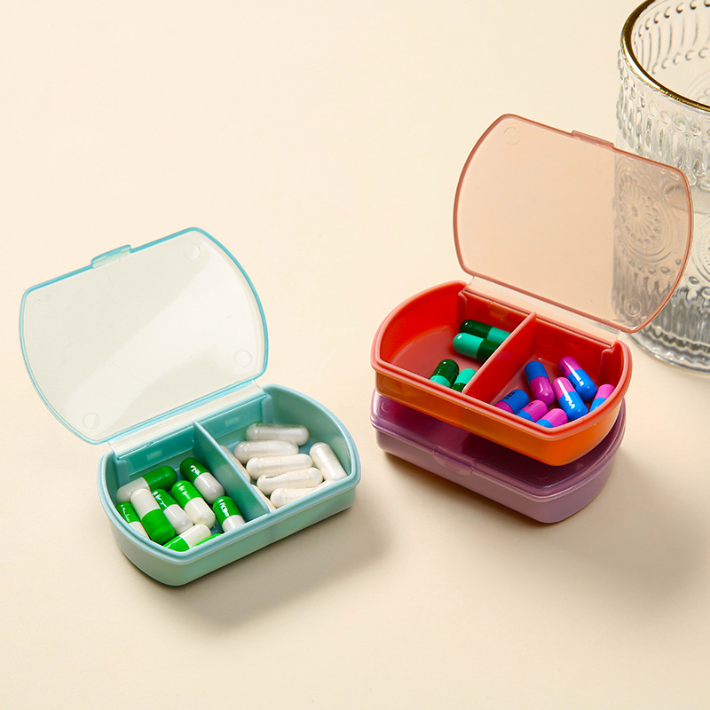携帯2格のミニ錠剤を分けて収納します。食品級の簡単な携帯保健薬品の2格の小さい薬の箱です。
