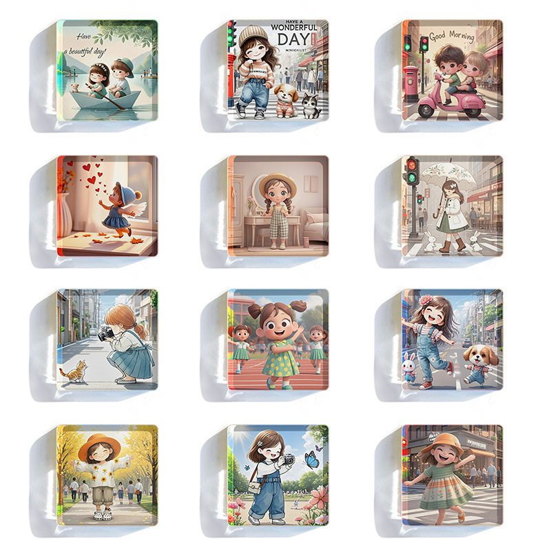 国境を越えたゴッホ油絵冷蔵庫貼り4*4アクリル冷蔵庫貼りキッチン、オフィス、家庭装飾に適している