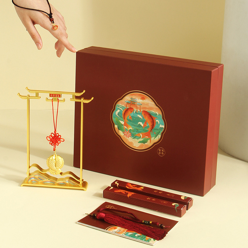 魚躍龍門招財置物は毎年魚の高級ギフトボックスの金属置物があります。