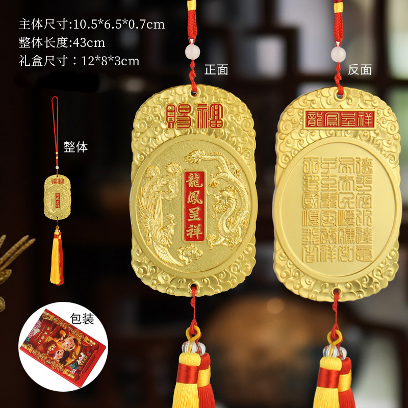 龍鳳呈祥トークン願い事札中国式ストラップ家庭装飾品奉旨金儲け金属ペンダント置物工芸品