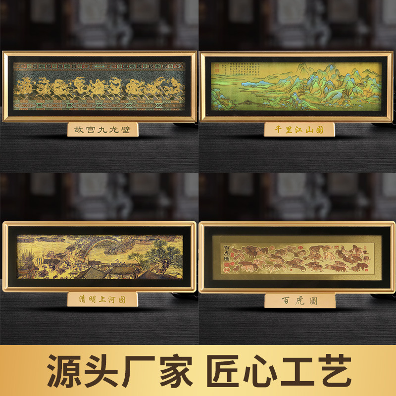 十大名画フォトフレーム置物千里江山図新中国式金箔絵置物震え音速手代発
