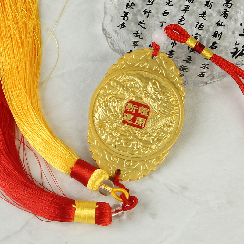 龍開新運トークン願い事牌中国式龍年金属ストラップ