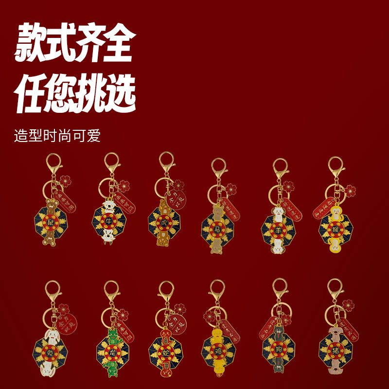 十二生肖八大守護神八卦牌のキーホルダーは男女の個性が回転してひょうたんの本命仏のペンダントを飾ります。