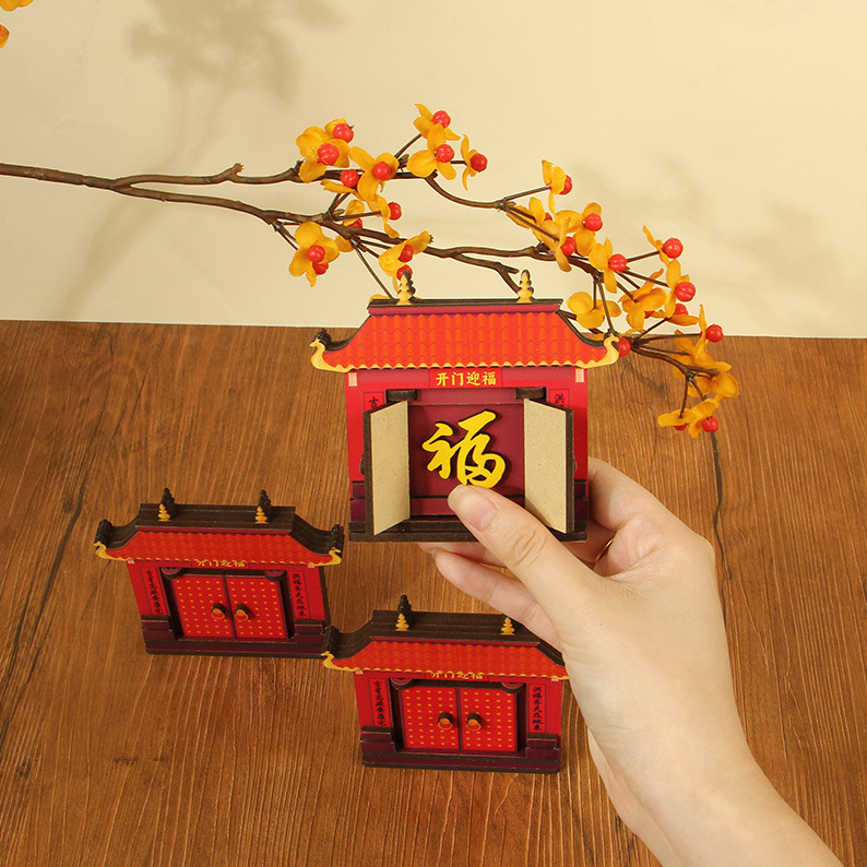 新型木造の窓開け冷蔵庫は国潮立体故宮文創観光都市創意プレゼント磁気記念を貼ります。