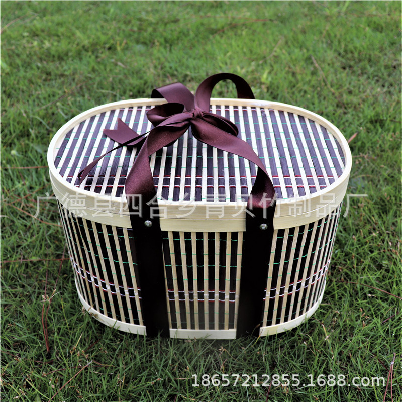 クリエイティブギフトバスケット印刷ロゴ楕円形リボン竹バスケット卵果物月餅ちまき