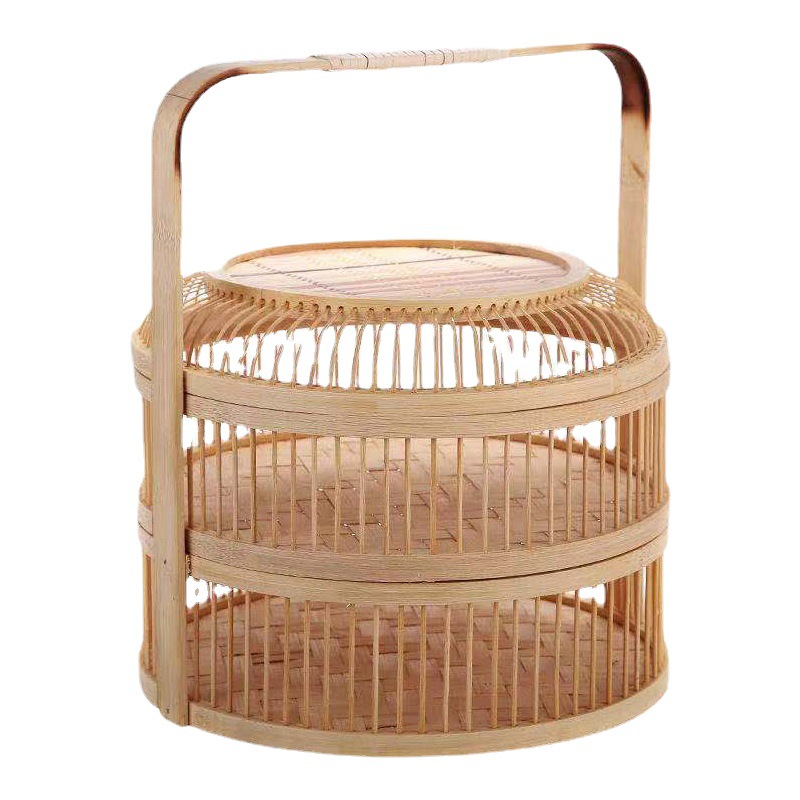 月餅や団子を入れる手作りの古風な高級竹かご、竹製食品包装、安徽竹工場、価格優遇