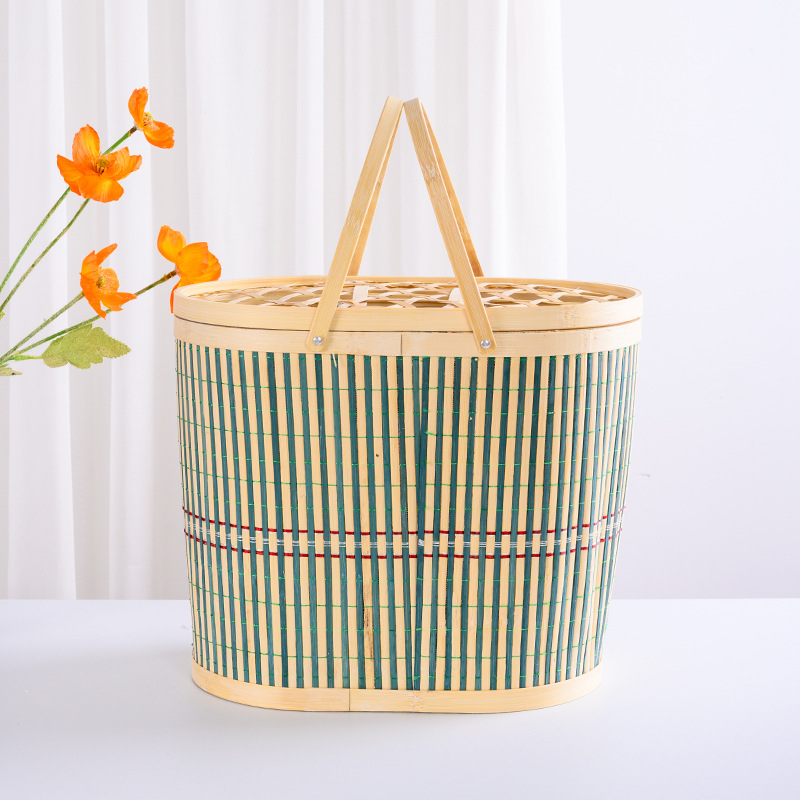 大きいサイズの楕円形の竹のかごの正月の贈り物の箱の端午の中秋の贈り物の包みのちまきの月餅の竹の包装