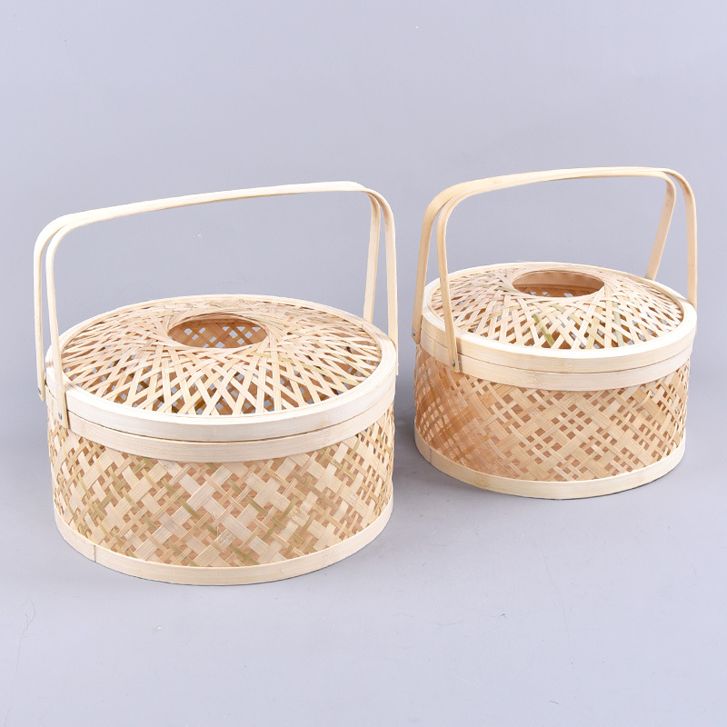 手作り楕円形メッシュ竹バスケット卵果物ちまき月餅竹包装