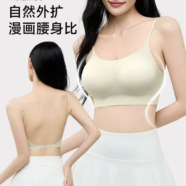 夏の新型肩ベルトなしステルス下着女性無痕美背滑り止め防走光小胸側収副乳包ブラジャー