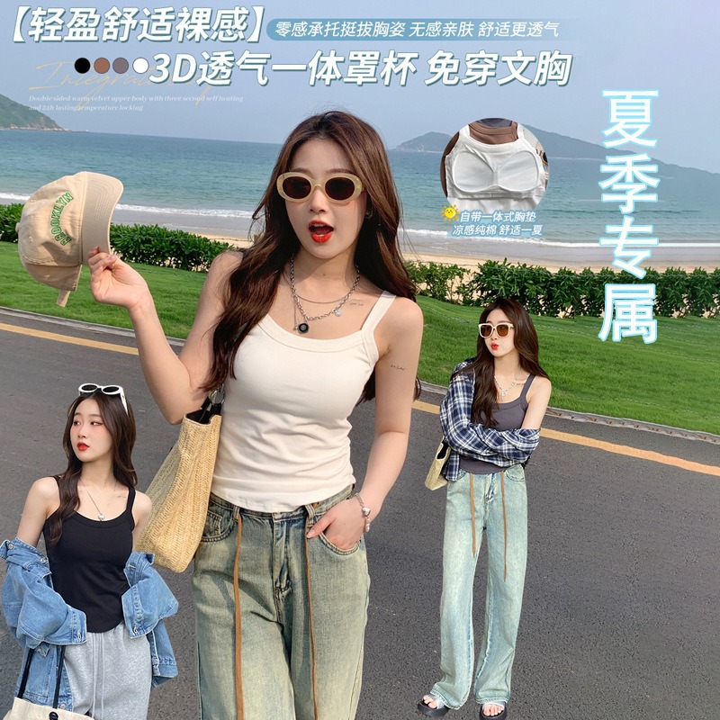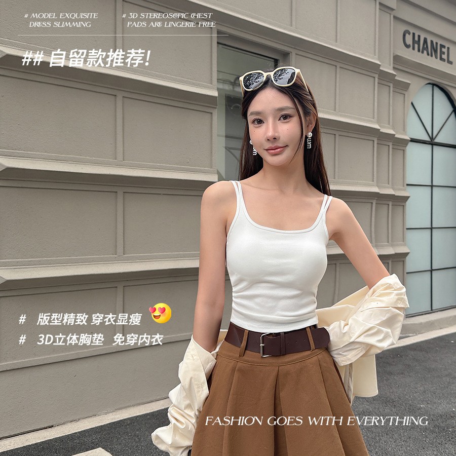 セクシーな女性用キャミソール、純綿、胸パッド付き、一体型、胸を包み込む、スリムフィット、外でも着られる、インナー、綿素材、通気性