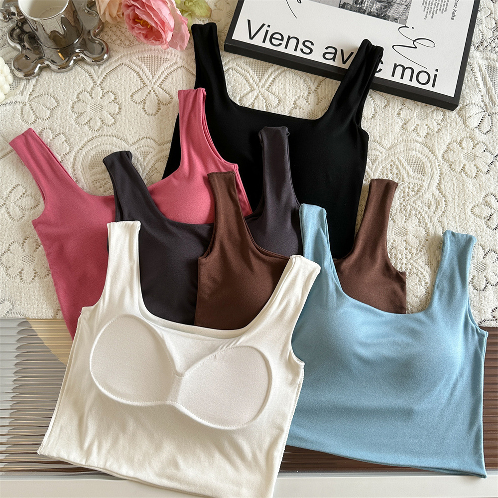 小さめのキャミソール、リブ編みコットン、U字型美背、万能、スリムフィット、胸パッド付き、固定カップ、胸を包み込む、女性用、露出防止、ベストタイプ