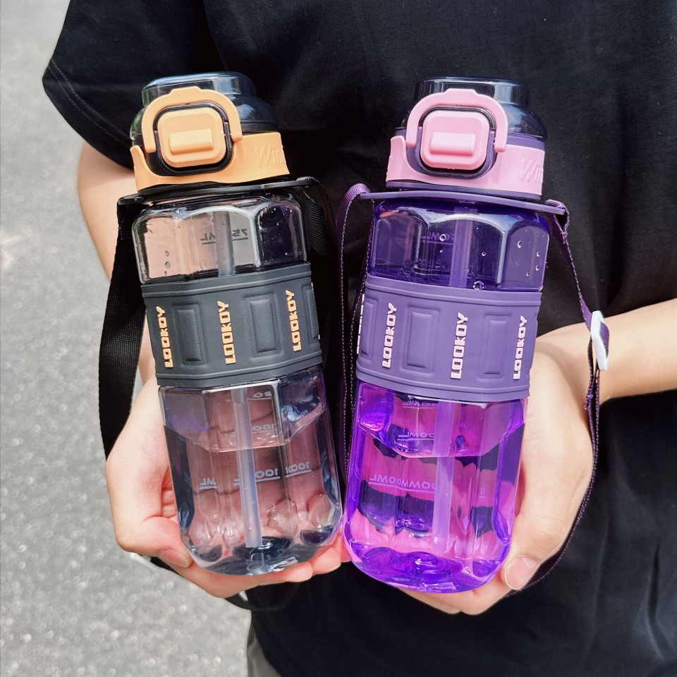 新商品スポーツ大容量アルファベットプリントストロープラスチックカップフィットネス屋外学生カップポータブルカップ