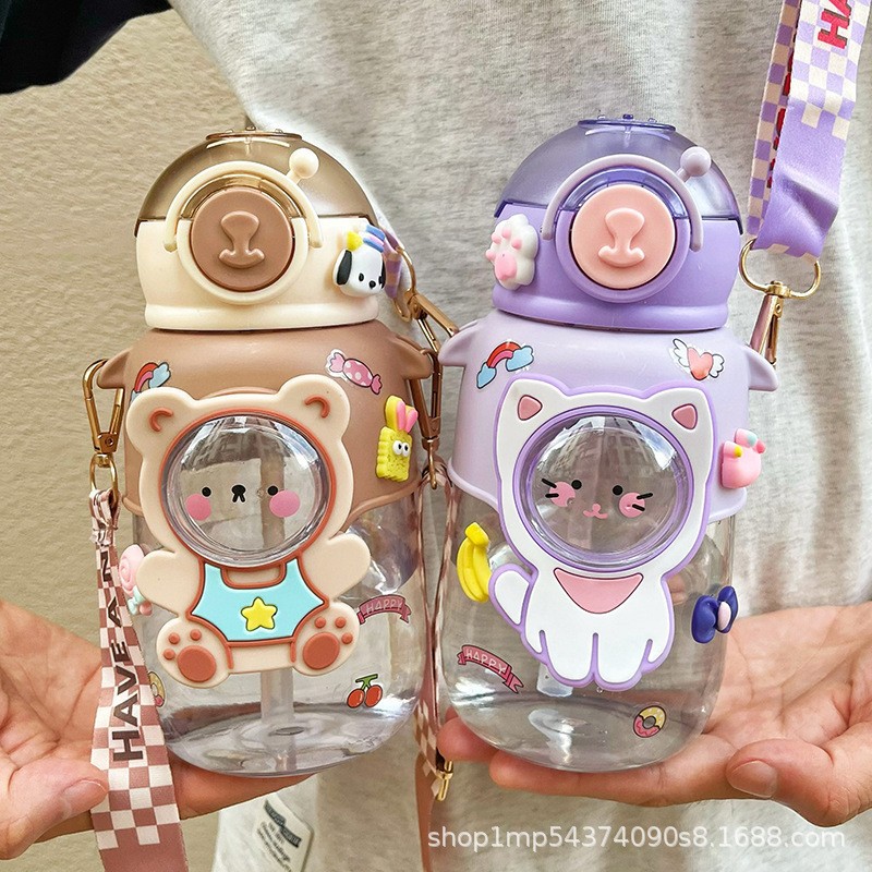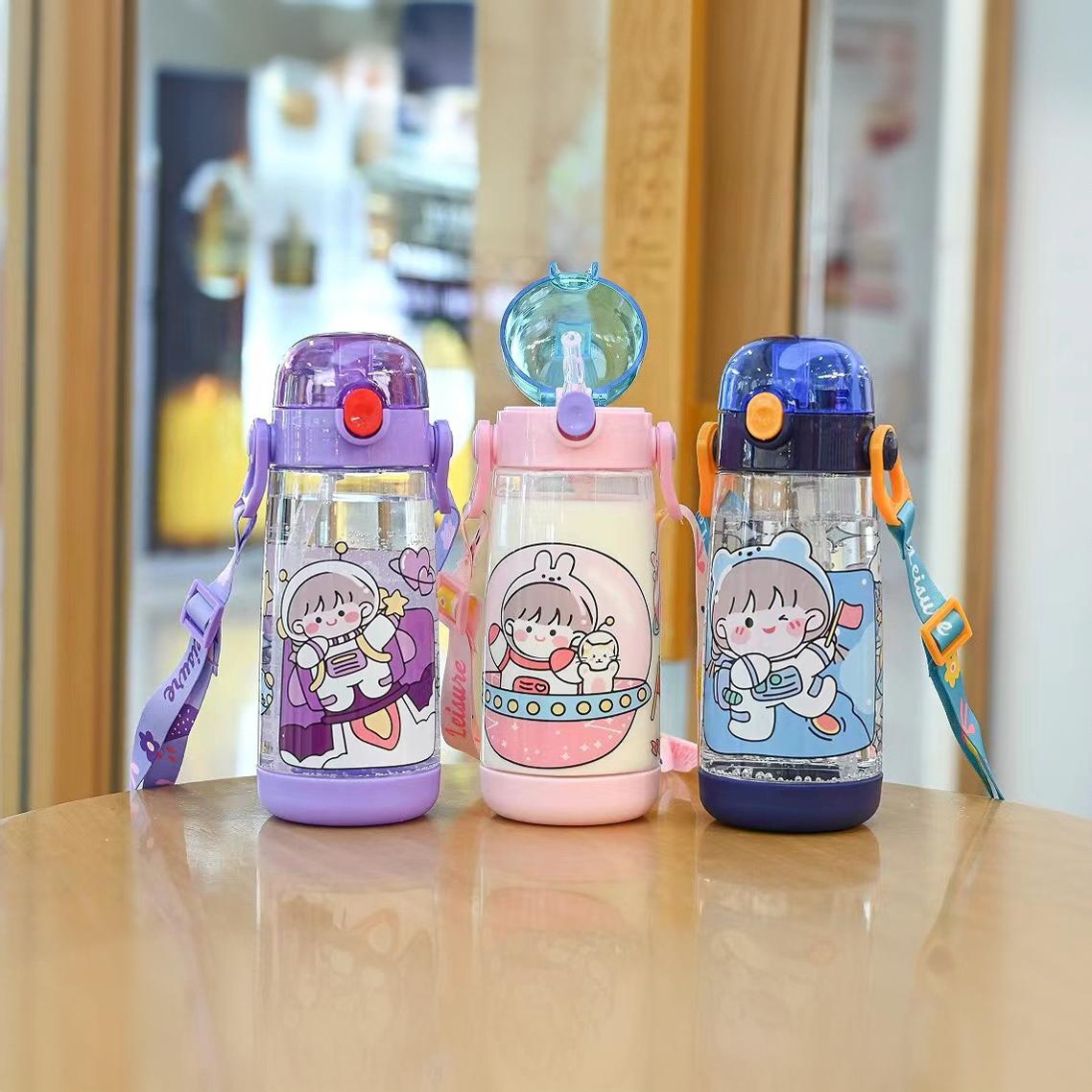 新作アニメ創意子供用コップ女性携帯水筒小学生プラスチックコップ夏可愛いストローコップ