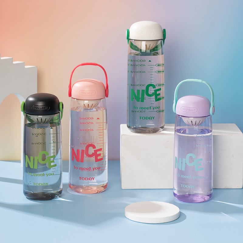 翊同-5507新型プラスチックカップ600mlカップルプラスチックカップ学生が手に入れたプラスチックカップは清新で目盛付きカップがついている