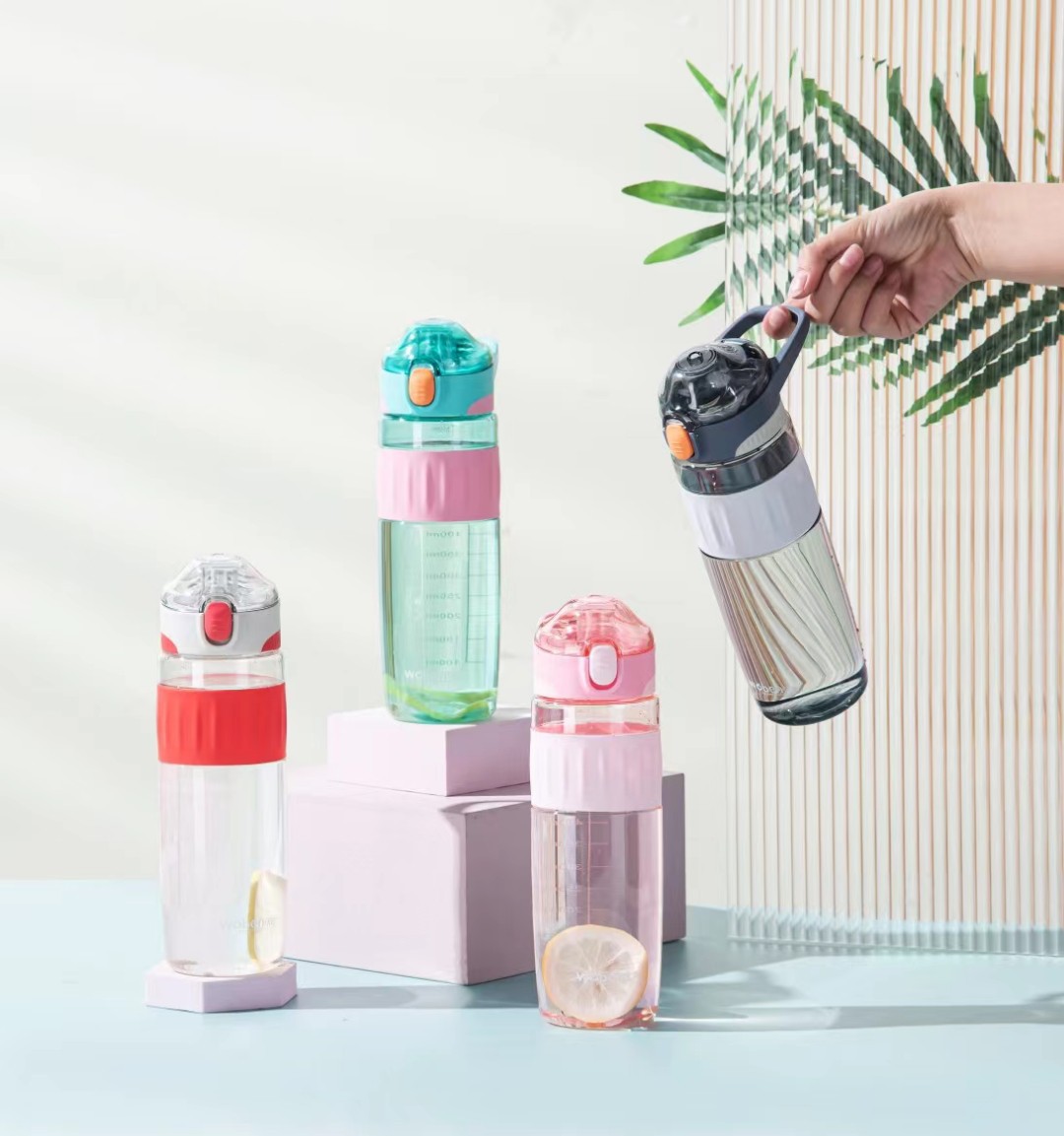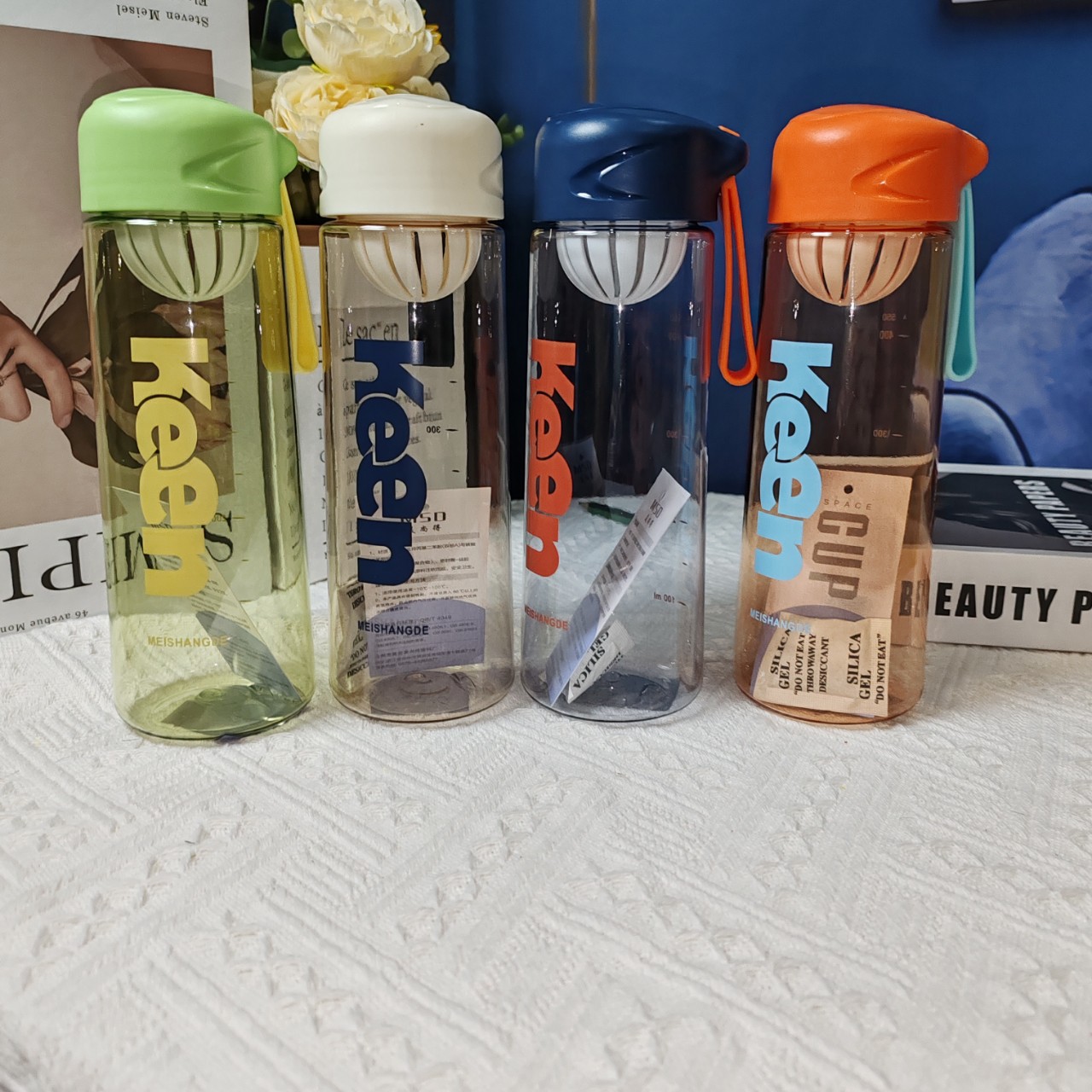 卸売り網紅高颜値角型水瓶ストロープラスチックコップ携帯ロープ屋外運動フィットネス水筒
