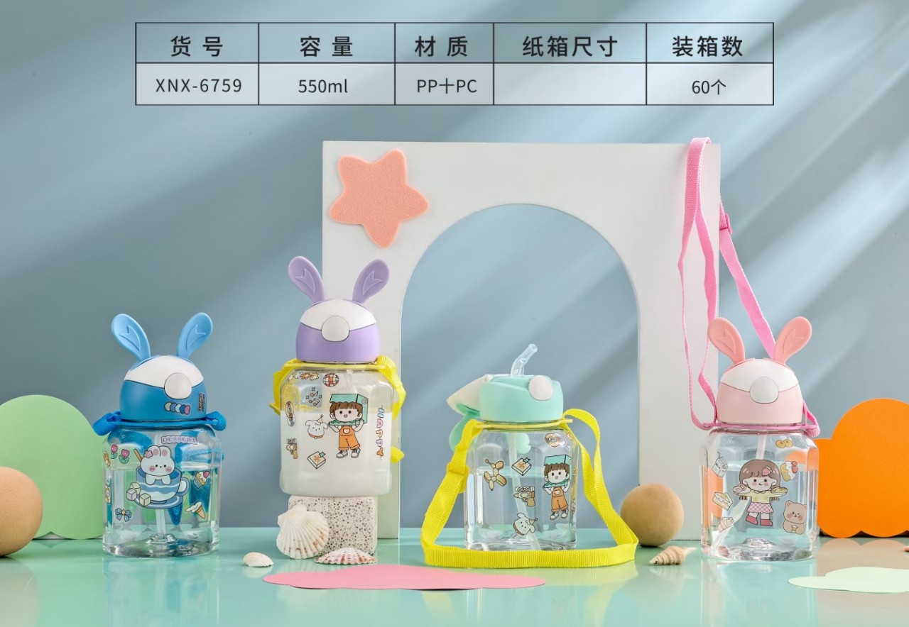 夏の新型プラスチックカップネット赤二杯子供学校の携帯カップ転倒防止大容量ストローカップ