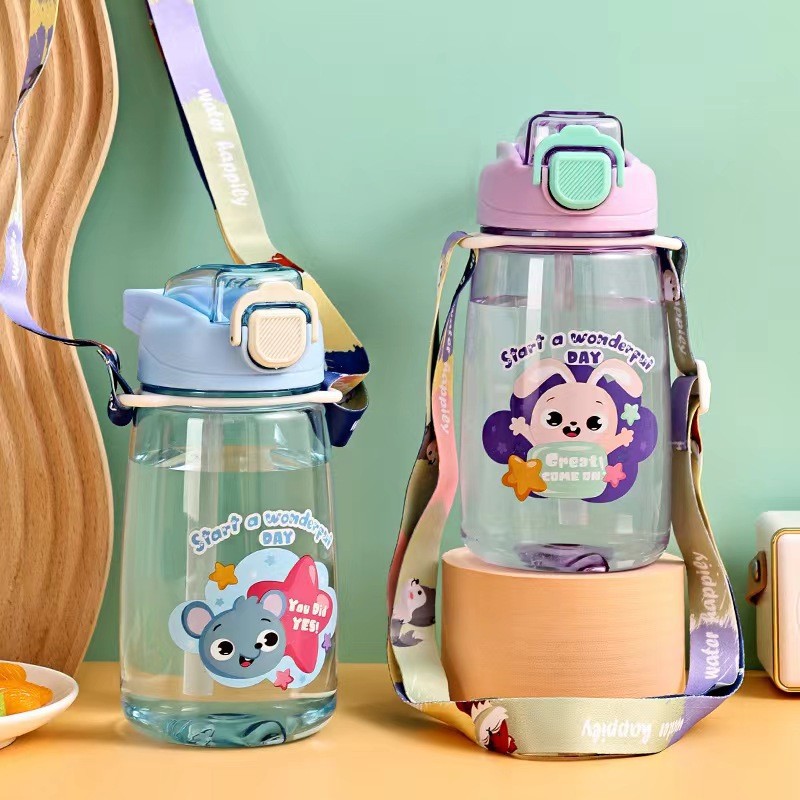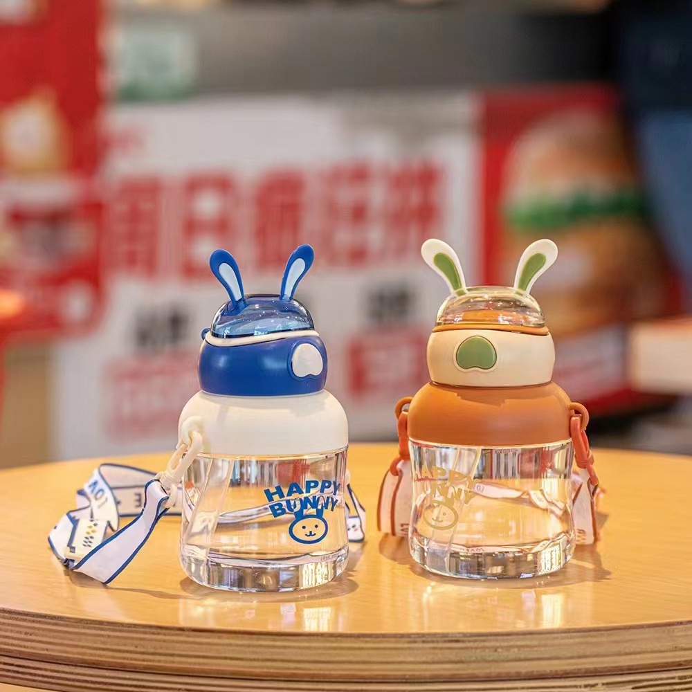 幼稚園直飲ストラップ付き大容量かわいい萌えウサギストローカップ新製品子供携帯屋外プラスチック水筒