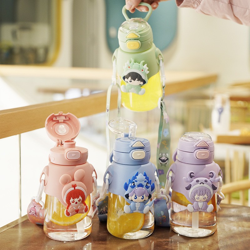 子供用コッププラスチック子供学生屋外携帯水筒バウンスカバー漫画ストローコップ