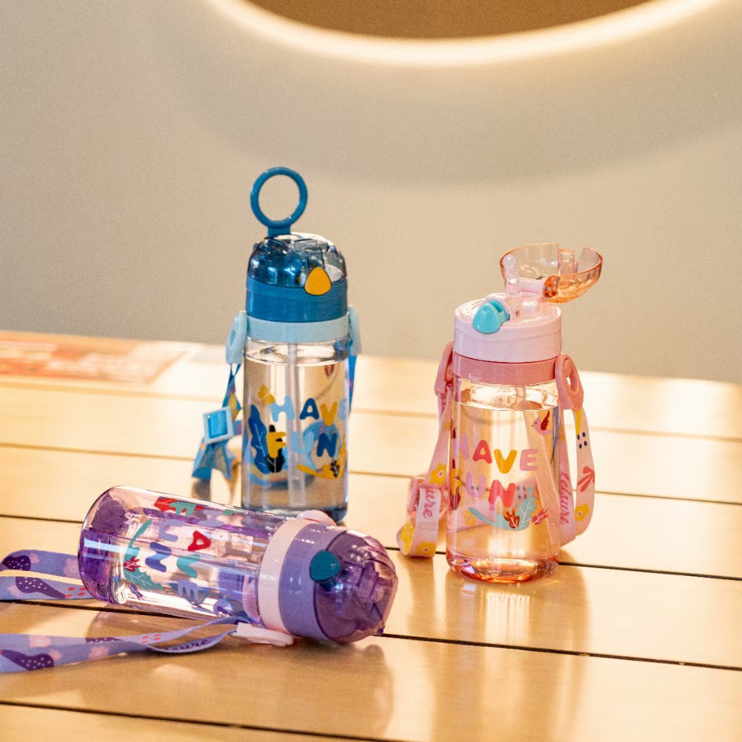 シンプル萌え趣味小腹カップファッション女子高颜値ストラップ650ml夏児童学飲カッププラスチック水筒