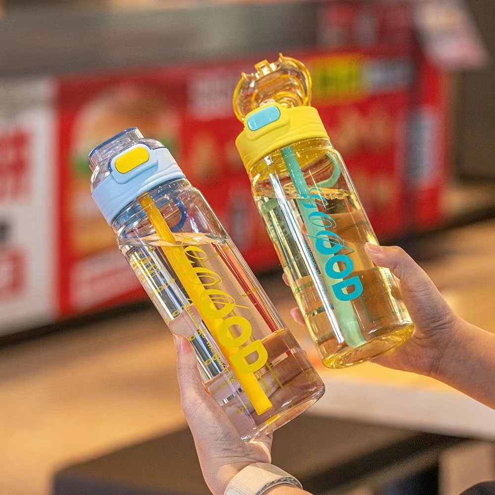 透明創意ストローコップ携帯男女学生大容量アウトドアスポーツ水筒プラスチックコップ