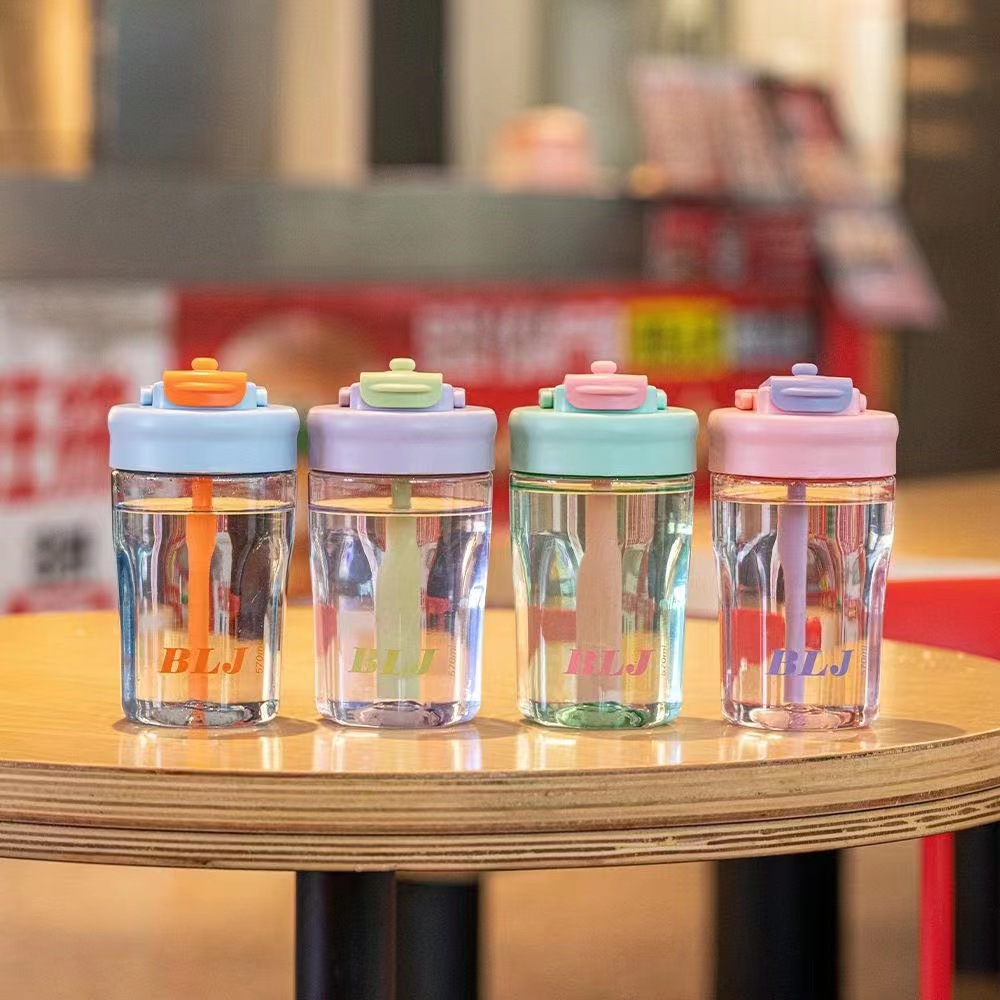 女性insシンプルなポータブルお茶分離学生児童転倒防止アイデアかわいいストローカップ携帯プラスチックカップ