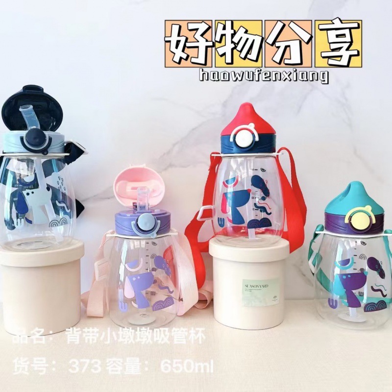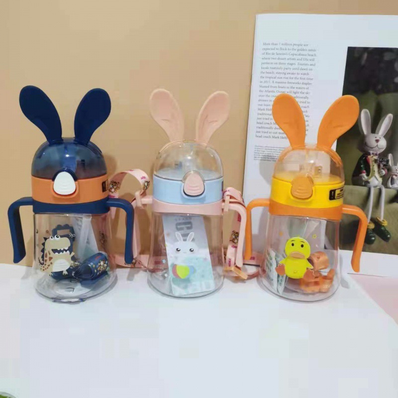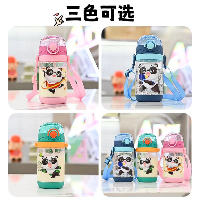 新型アニメ立体蓋ストローカップ透明耐落下幼稚園赤ちゃん水筒は斜めに跳ねることができます。