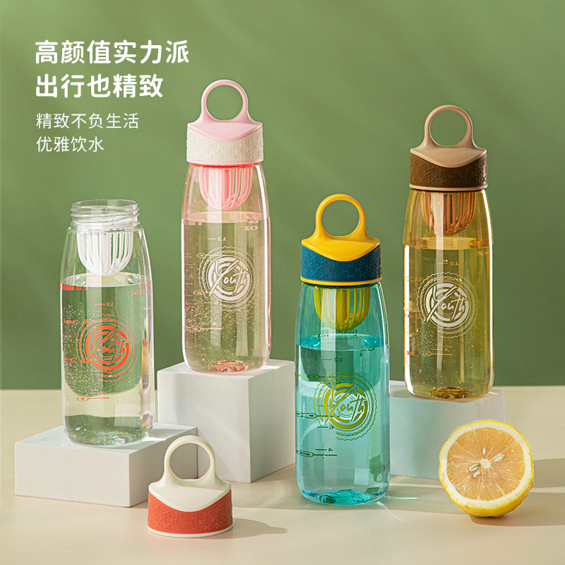 ストローカップ運動フィットネスカッププラスチック高颜値耐高温帯スケール創意学生男女清新携帯
