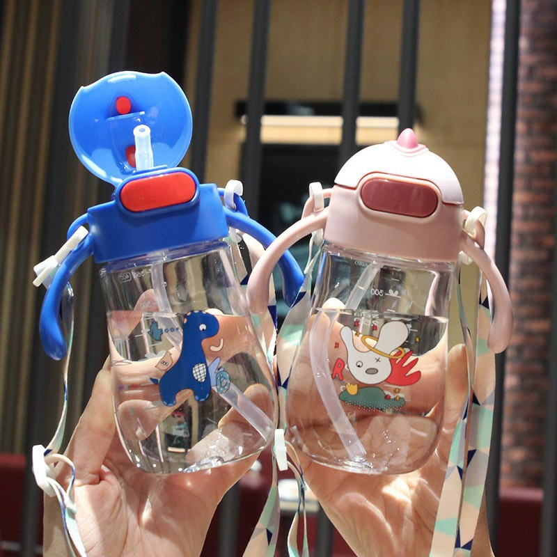 子供用コップ通学専用プラスチックコップストラップ取っ手付夏かわいい食品級ストローコップ