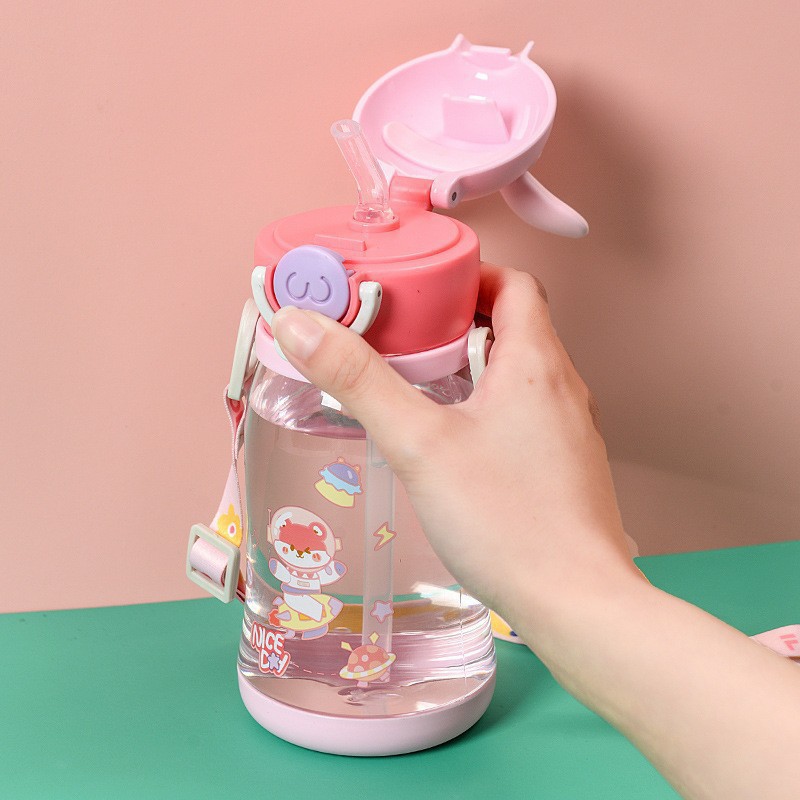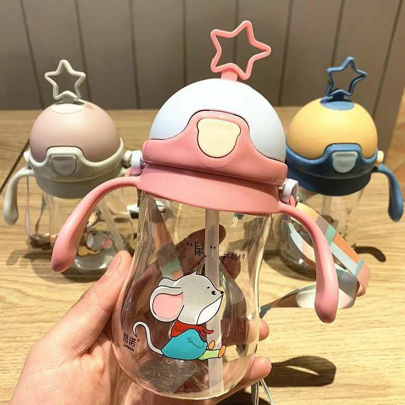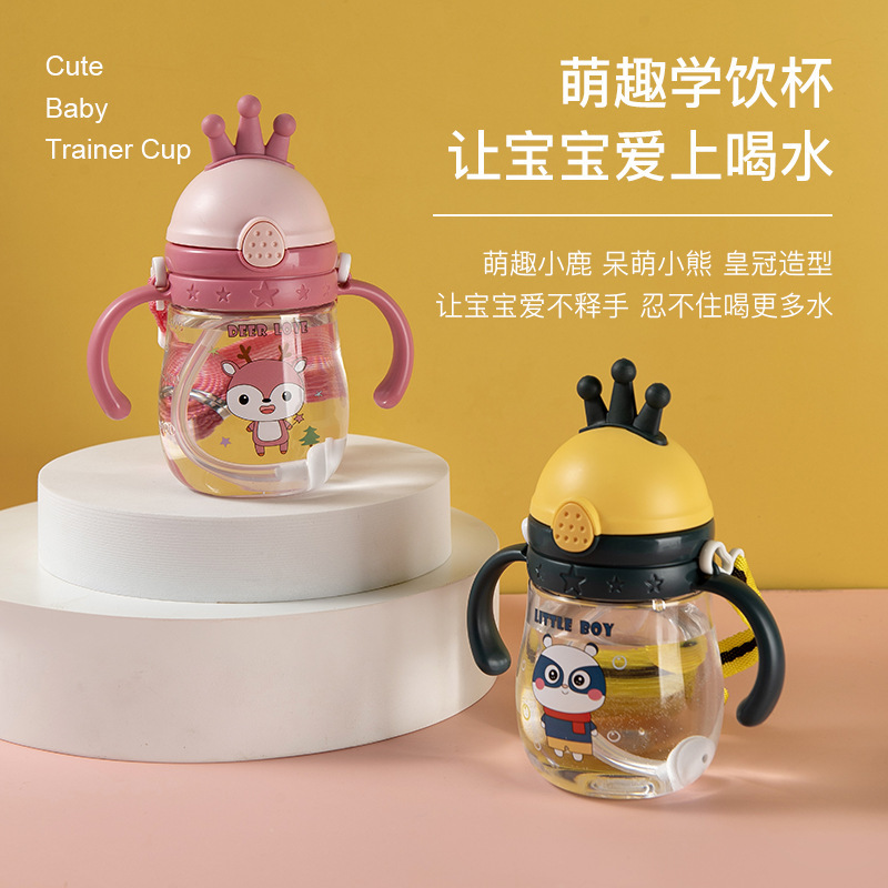 ハンドルストラップ両用ストローカップ男女赤ちゃんが水を飲む幼稚園のアイデア水筒が落ちないかわいいプラスチックコップ